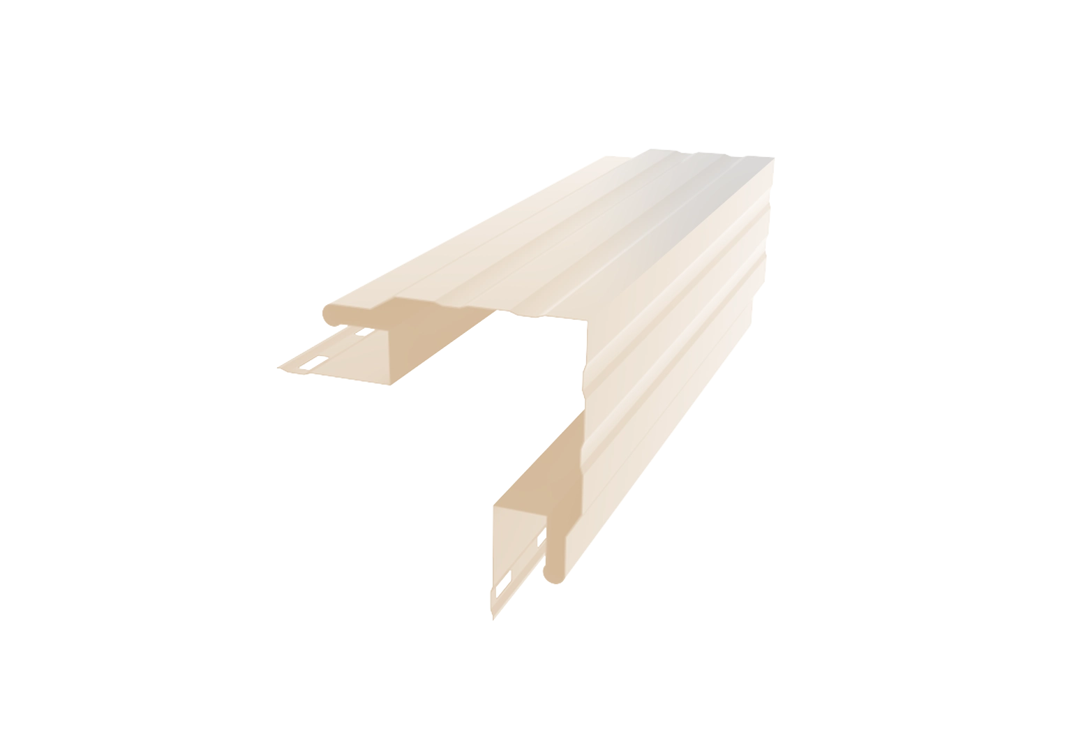 Угол внешний сложный 80 x 80 ДАМИР (0,45/пор. окраш. 1014 бежевый) - закрывает внешнее угловое соединение сайдинга. Сначала монтируется угол. Сайдинг монтируется во вторую очередь в паз угла.