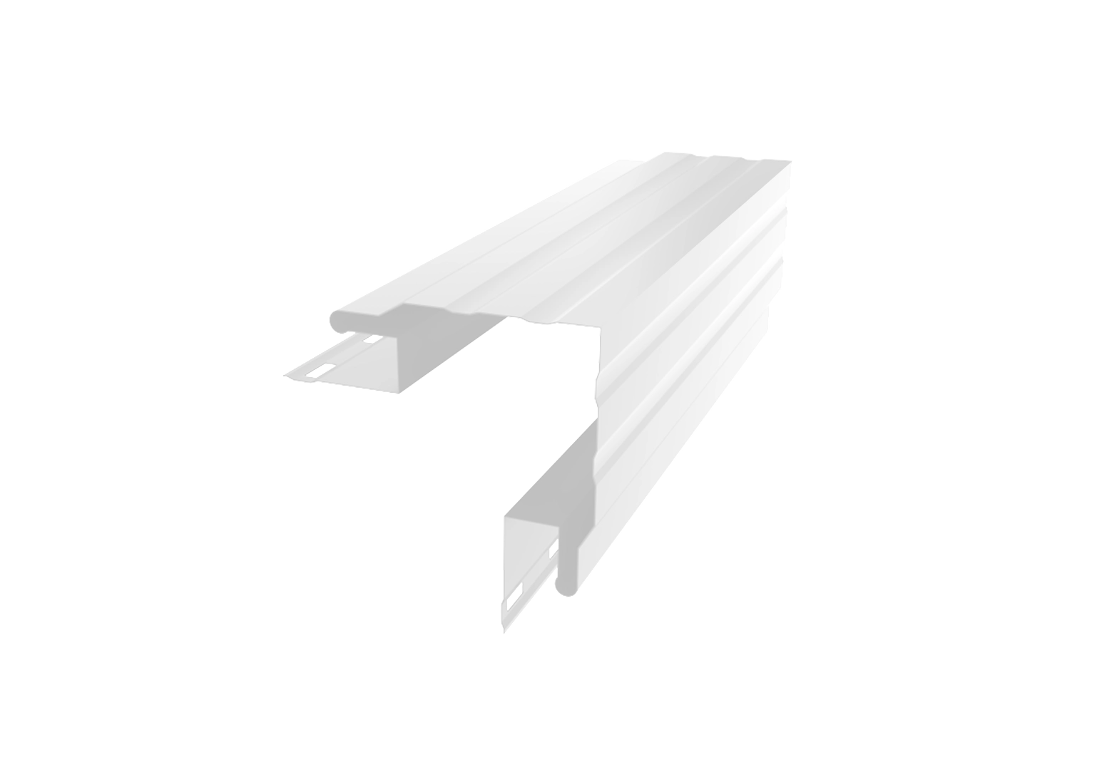 Угол внешний сложный 80 x 80 ДАМИР (0,45/пор. окраш. 9003 сигнально-белый) - закрывает внешнее угловое соединение сайдинга. Сначала монтируется угол. Сайдинг монтируется во вторую очередь в паз угла.