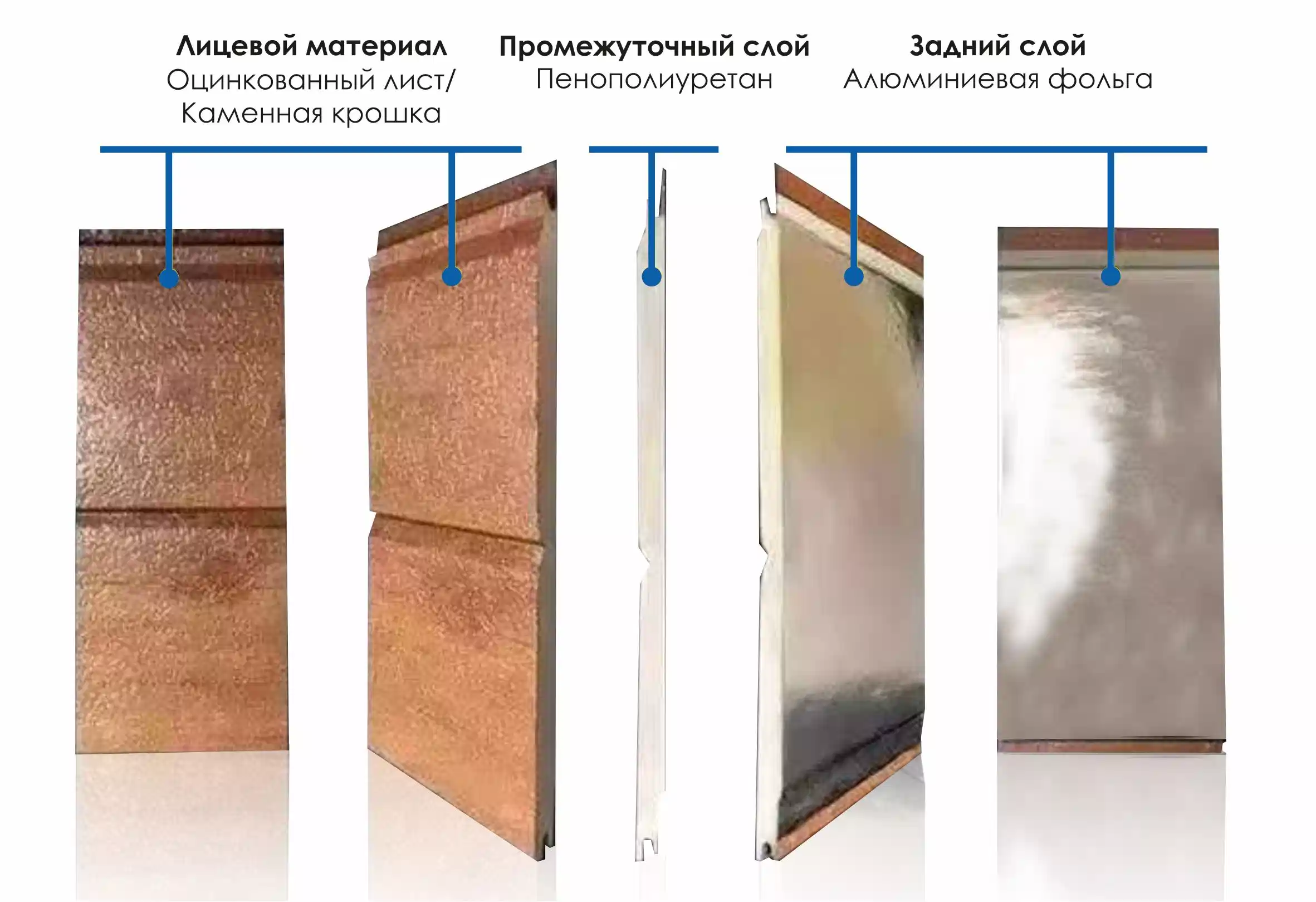 - Уникальная конструкция. Внутренний слой материала выполнен из оцинкованного алюминиевого листа толщиной 0,5 мм, а наружный - из 7 слоев краски на смолистой основе. Пенополиуретановый слой панели толщиной 16 мм соответствует по теплопроводности 50 мм пенопласта. Теплоизоляция дополнительно зазищена от воздействия плесени и влаги слоем алюминизированной бумаги.