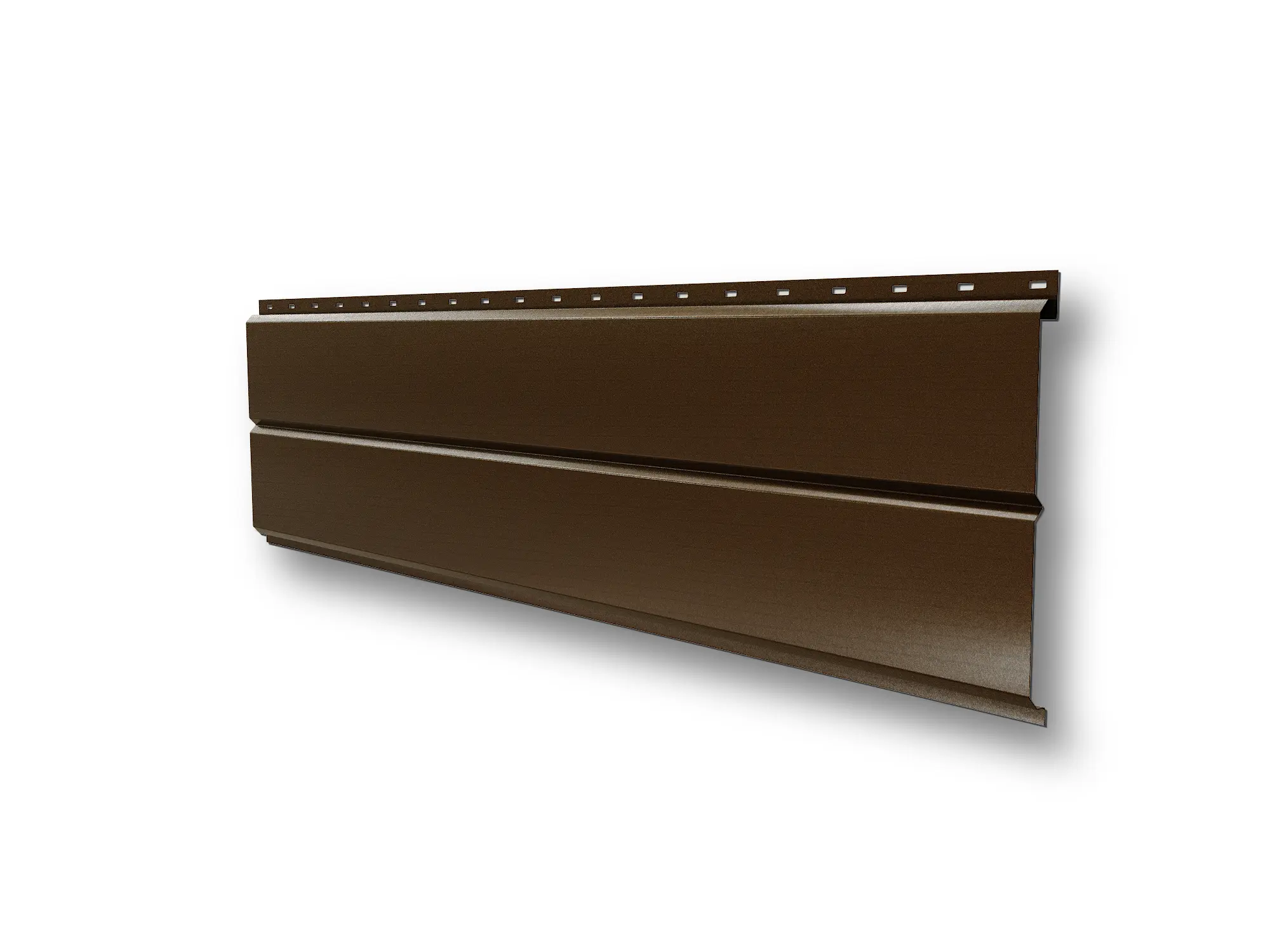Сайдинг металлический Евробрус 255 (230) (0,45/8017 шоколад МАТ) - уникальный облицовочный материал для декоративной наружной отделки жилых домов, ресторанов, торговых залов, производственных объектов различного назначения. Также он используется при возведении заборов, подходит и для стен, для подшивки карнизных и фронтонных свесов, а также подвесных потолков.