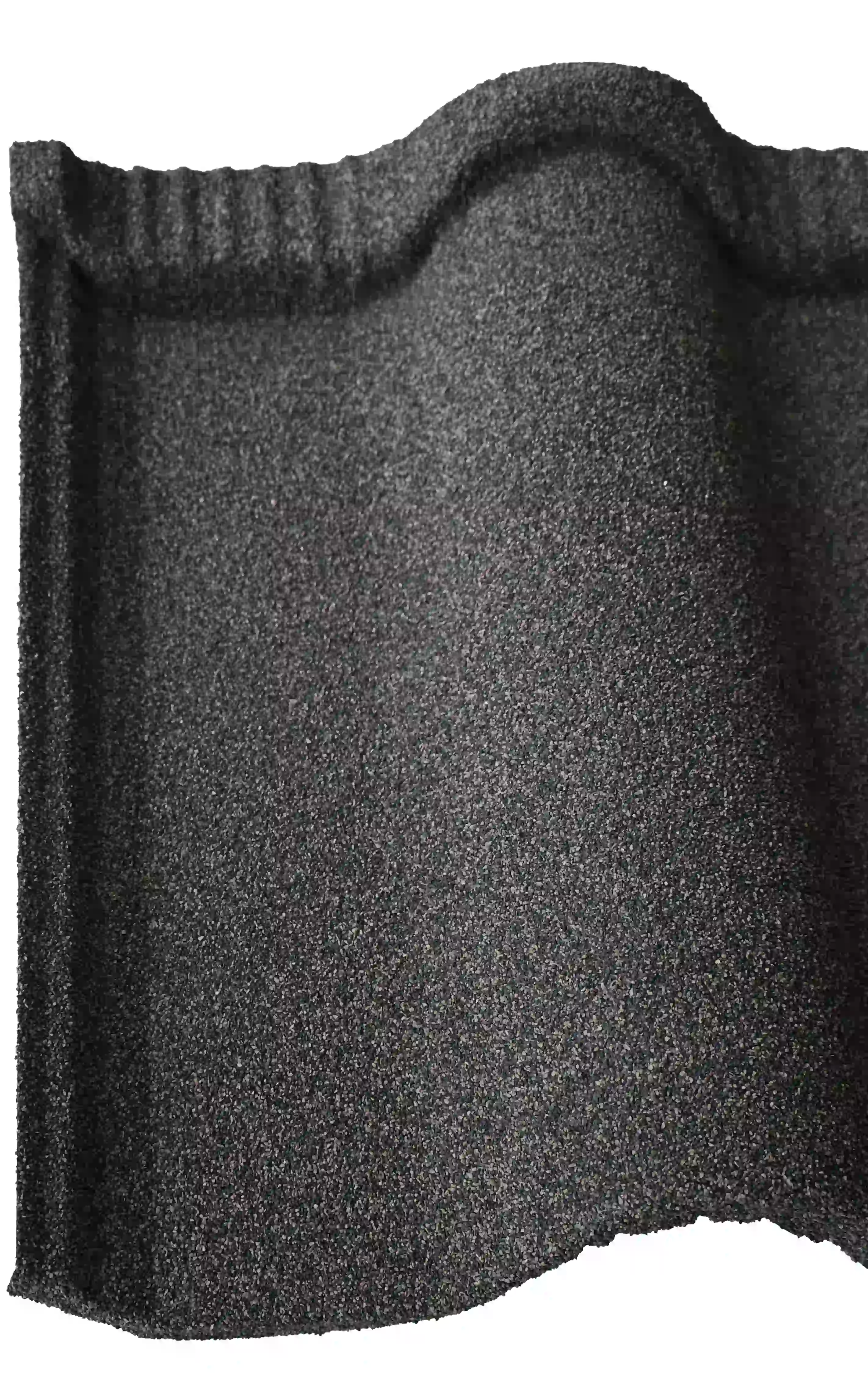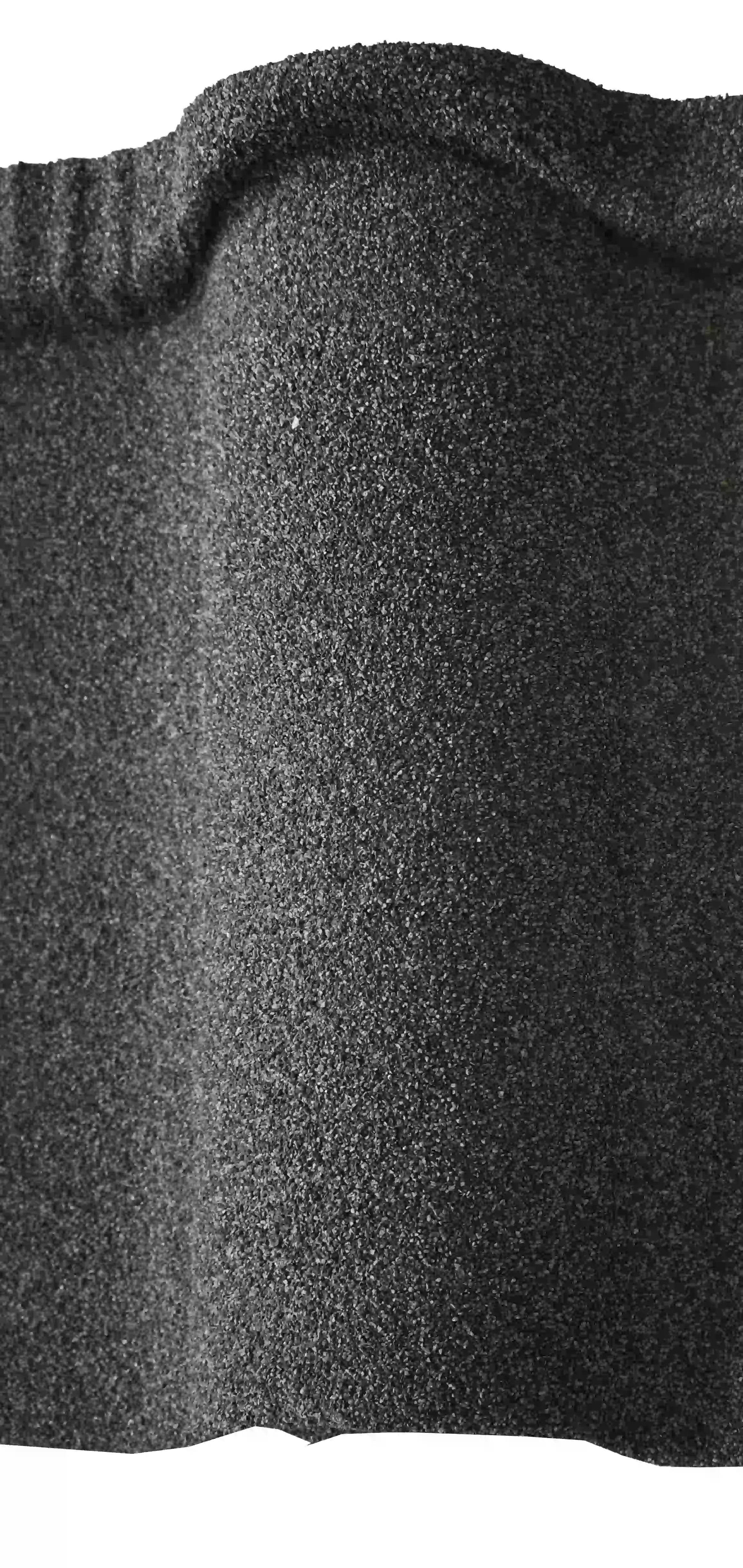 Композитная черепица StoneCover 1280 (1200) мм, графит с покрытием из каменной крошки представляет собой многослойный материал, состоящий из стального листа, покрытого алюмоцинковым сплавом, акриловой грунтовкой и слоем каменной крошки.