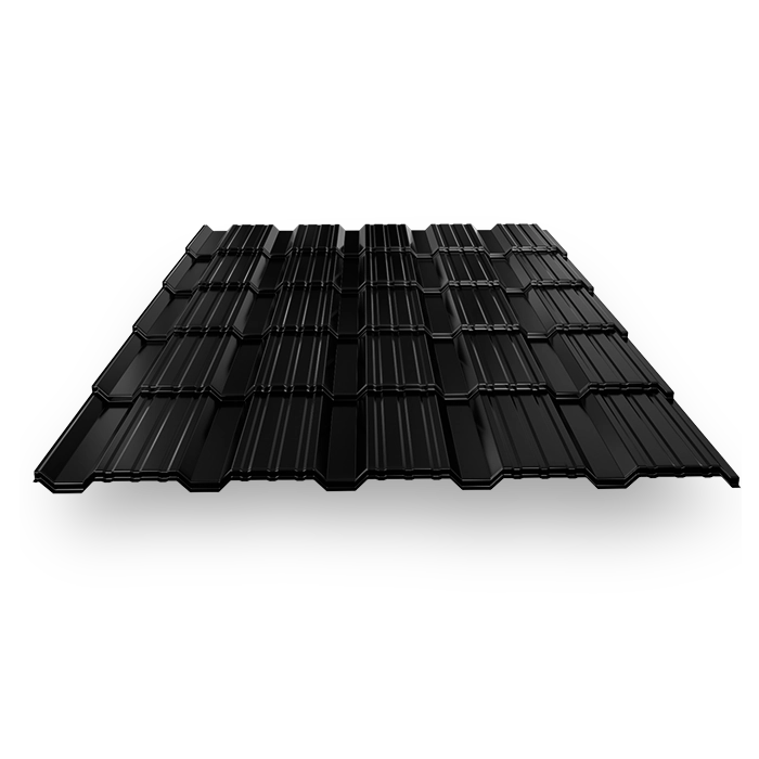 Профиль кровельный по типу металлочерепицы "Каскад" 1160 (1110) (0,45/9005 черный/19/350) - современный кровельный материал, который выглядит очень стильно и оригинально, его внешний вид напоминает плитку шоколада. Монтируется с незначительным нахлестом, благодаря чему число стыков и количество отходов минимально.