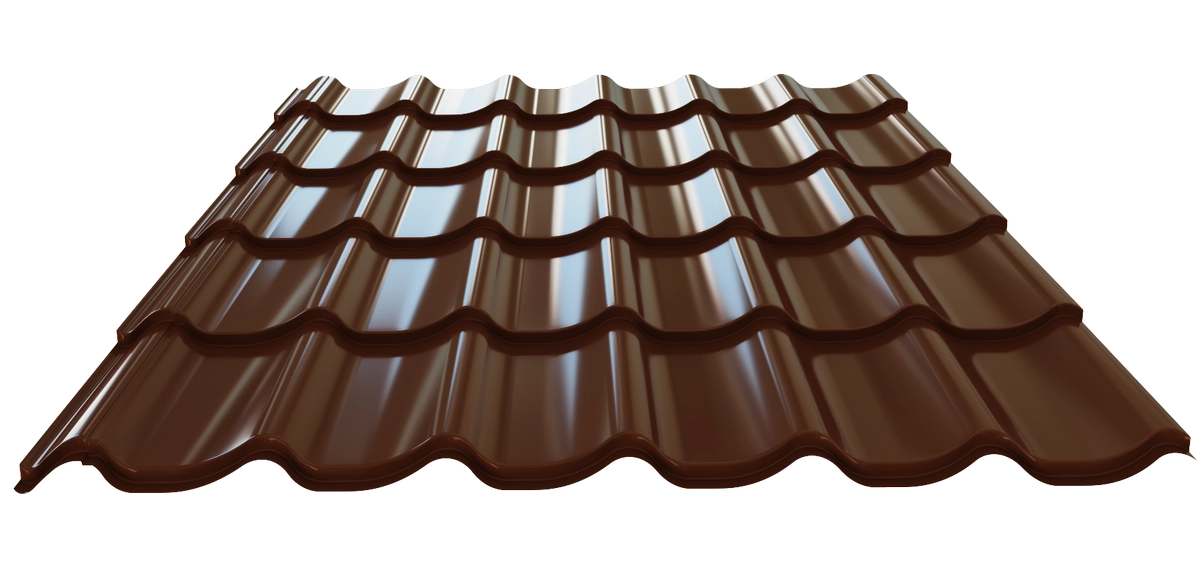 Профиль кровельный "Монтеррей" 1185 (1100) ПБ, ПАнг (0,4/8017 шоколад/14/350) - кровельный материал, имитирующий натуральное черепичное покрытие, изготавливается из оцинкованной стали с полимерным покрытием. Благодаря своей простоте, надежности и доступной цене, такая кровля по типу металлочерепицы является самым популярным из всех современных кровельных материалов.