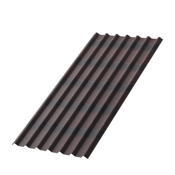 Лист Ондулин Черепица 950х1950мм (коричневый)- волнистый кровельный материал (называемый также еврошифер), на крыше дома выглядят так же, как металлочерепица. Это пропитанные битумом органические или неорганические волокна, которые сформированы в лист 10 волн со сжатой многослойной структурой. В основе – натуральная целлюлоза (картон) с добавлением минеральных гранул для жесткости, смола, битумные примеси и натуральные красители.