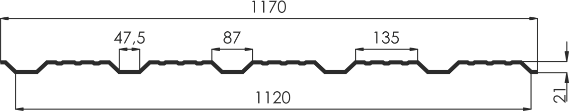 - рабочая ширина (вычитается нахлест листов при монтаже) 1120 мм