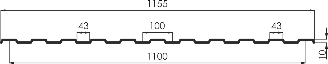 - рабочая ширина (вычитается перекрытие соседних листов при монтаже) 1100 мм,