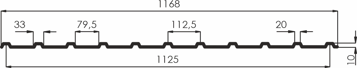 - рабочая ширина (вычитается перекрытие соседних листов при монтаже) 1125 мм,