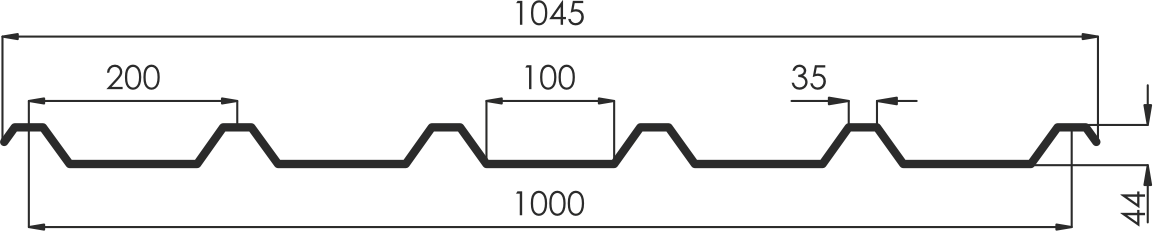 - рабочая ширина листа (вычитается нахлест соседних листов при монтаже) 1000 мм