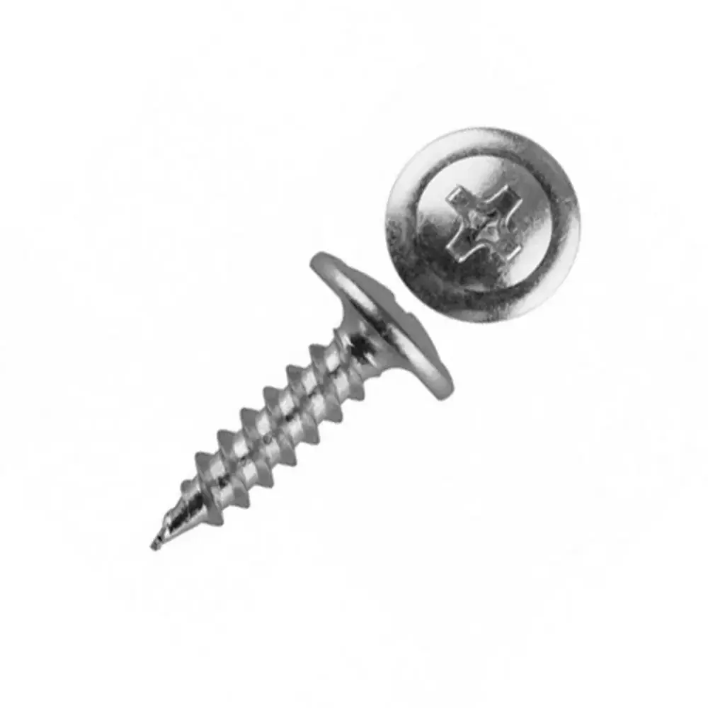 Особенности конструкции: головка выполнена в виде конуса и имеет крестообразный шлиц. Наконечник шурупа может быть острым (крепление листового металла до 0.9 мм без предварительного сверления) или сверловидным (крепление листового металла до 2.0 мм без предварительного сверления). За счет пресс-шайбы осуществляется эффективное прижимание листовых материалов.