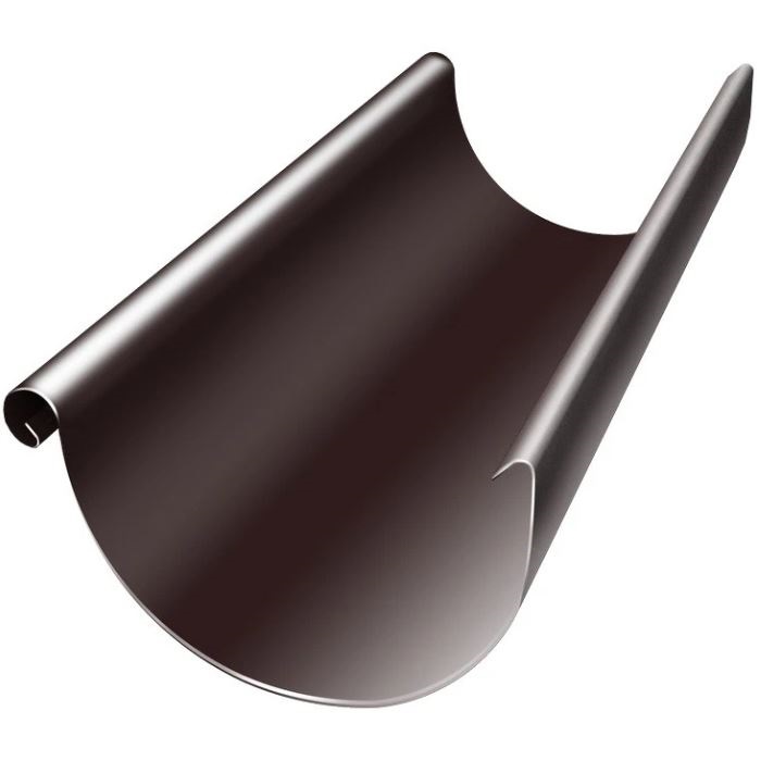 Желоб водосточный металл GrandLine (RAL 8017 шоколад) 150 мм L=3000 мм серии Grand Line 150/100 предназначен для сбора дождевой воды с кровли. Желоб фиксируется на крюках, установленных с промежутком 600-900 мм и обеспечивающих уклон 5 мм на погонный метр.