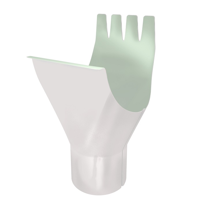 Воронка желоба GRAND LINE PE металл RAL 9003 сигнально белый 150 мм серии Optima 150/100 - это переходный элемент, организующий слив воды из желоба в водосточную трубу.