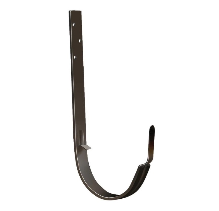 - служит для подвеса желоба на стропила, устанавливается до монтажа кровельного материала (длинный крюк).