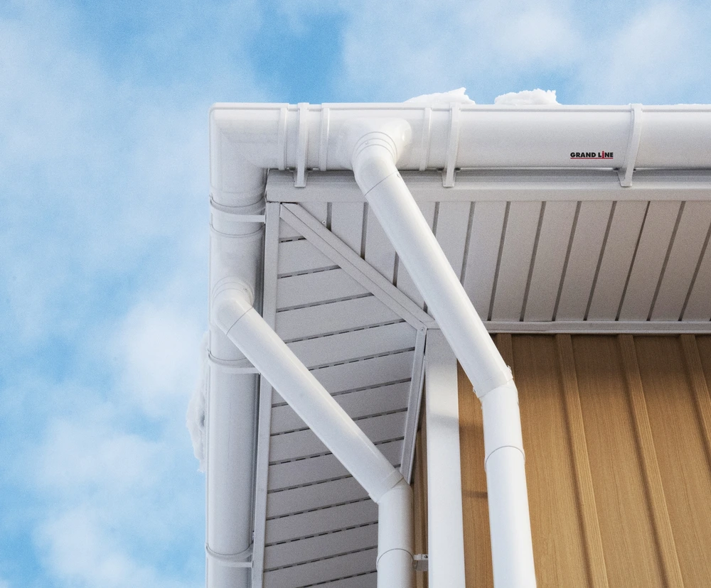 - Морозостойкость. Монтаж можно проводить при минусовых температурах до минус 17 градусов по Цельсию. Для части регионов монтаж материалов водостока из пластика возможен круглогодично!