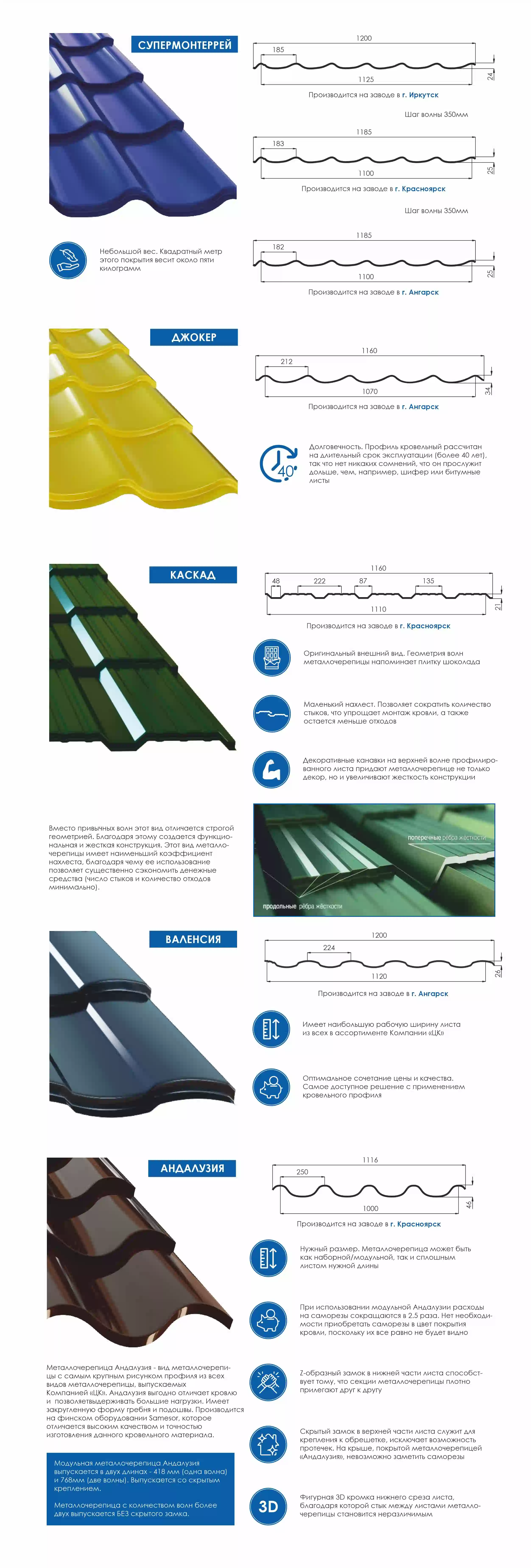 Размеры металлочерепицы ЦК